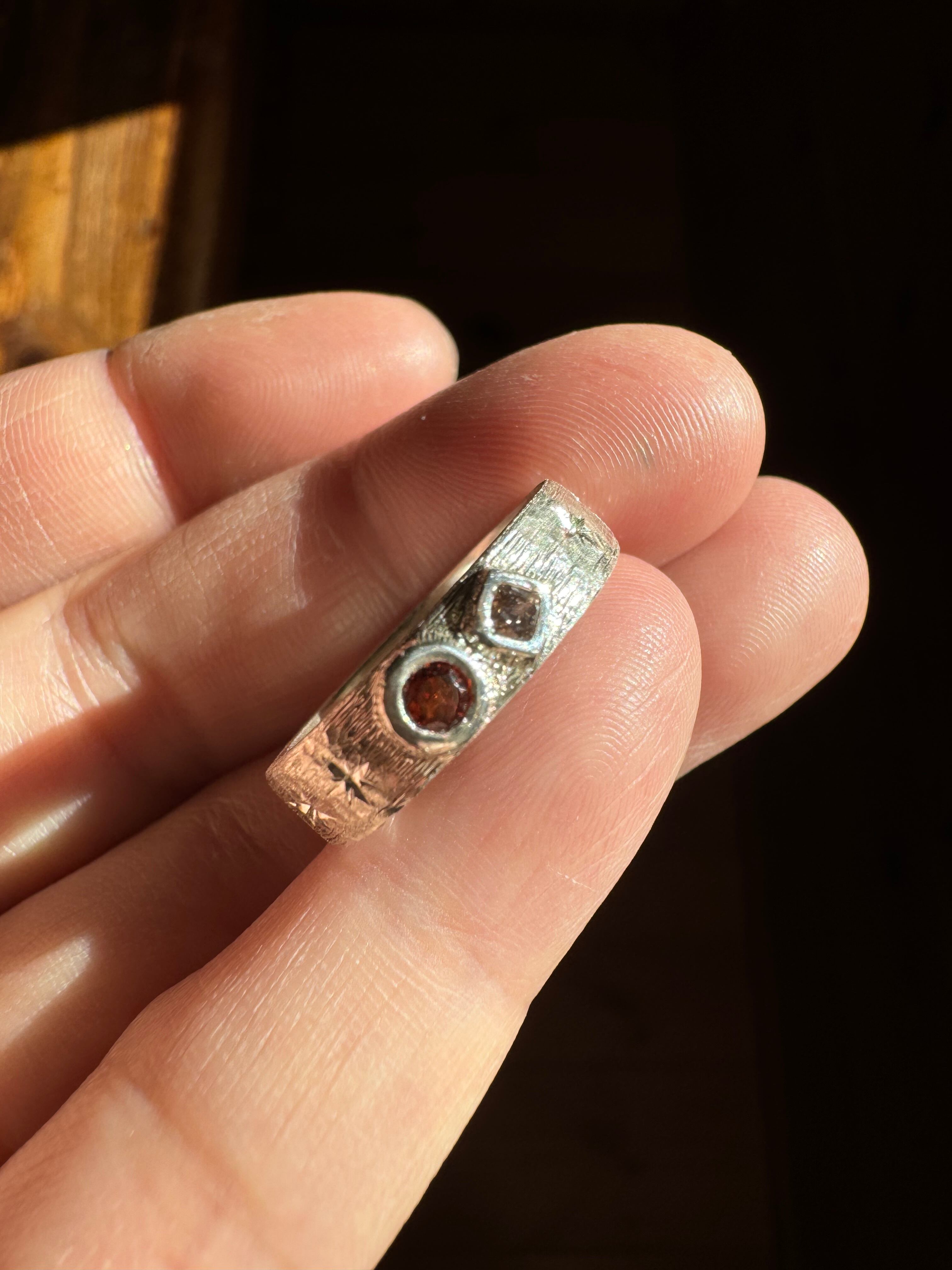 ガーネット×ダイヤモンド×純銀手彫りリング