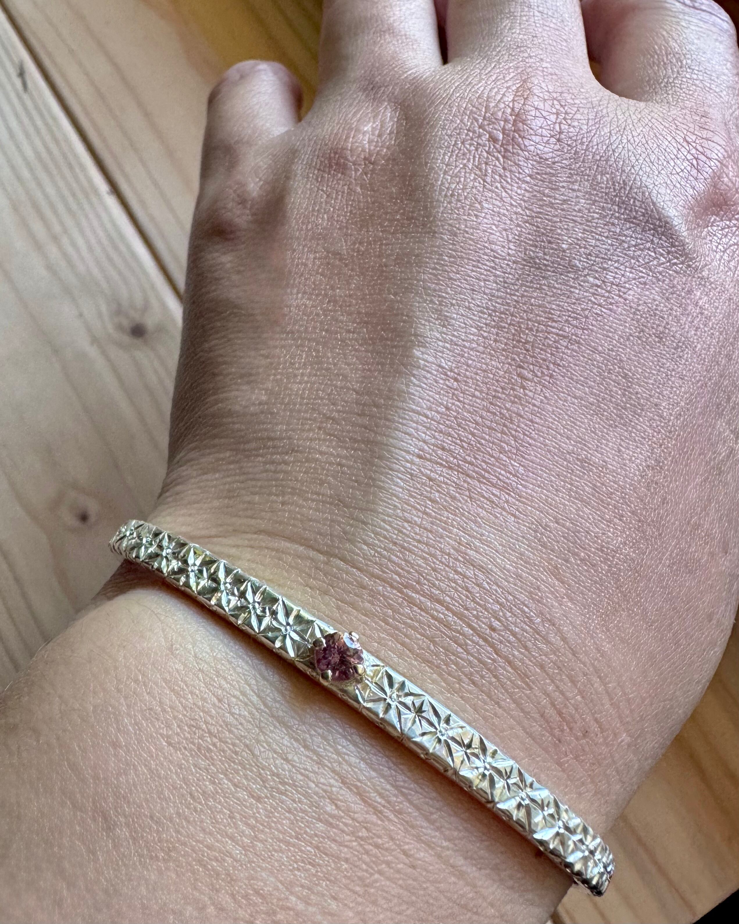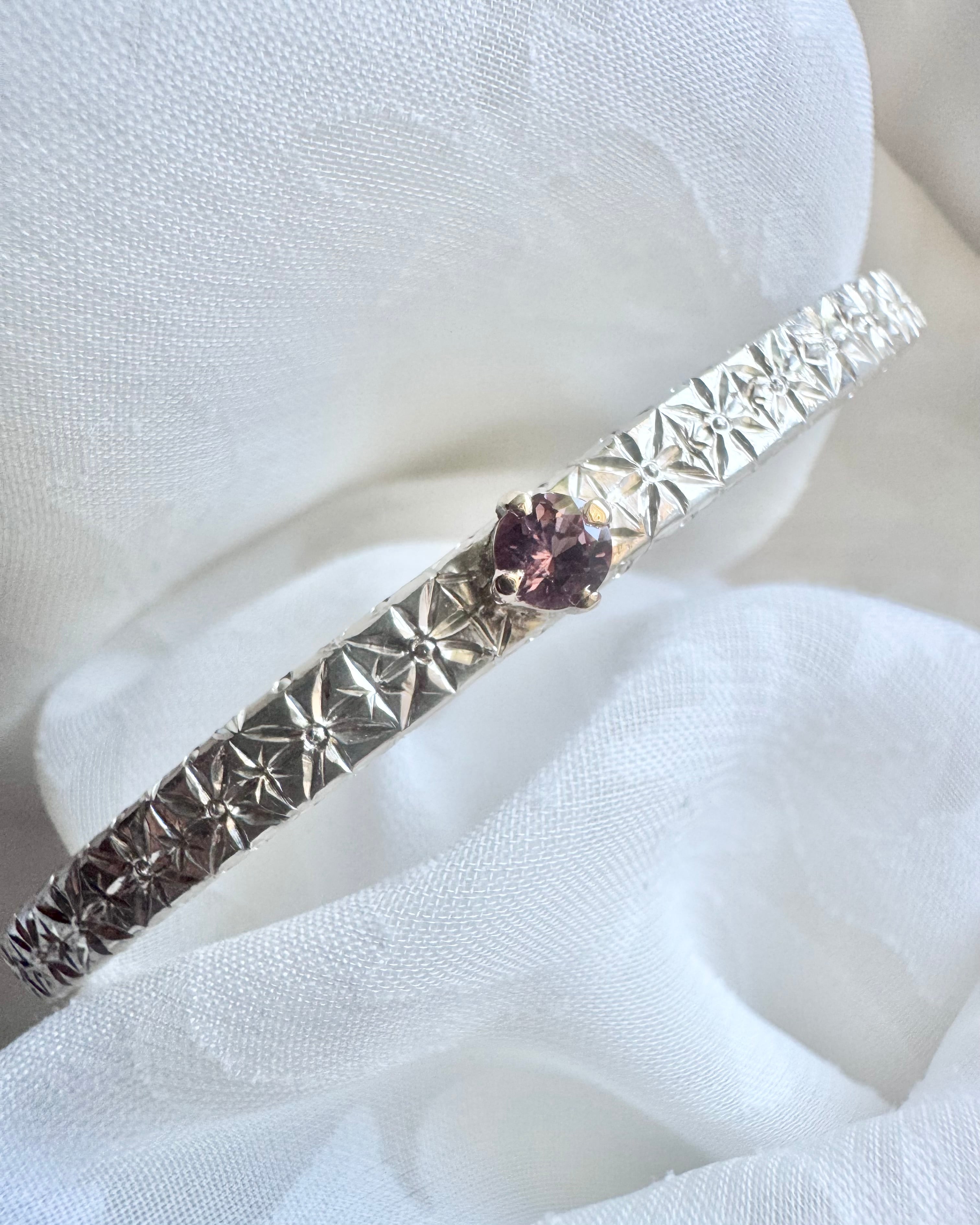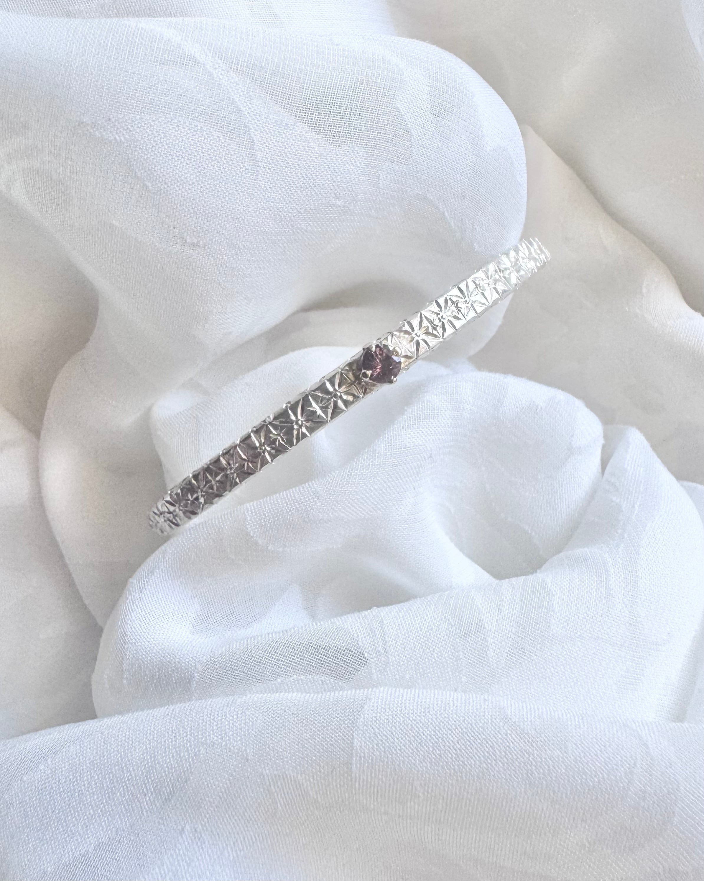スピネル×silver×石枠k10ygデザイン バングル