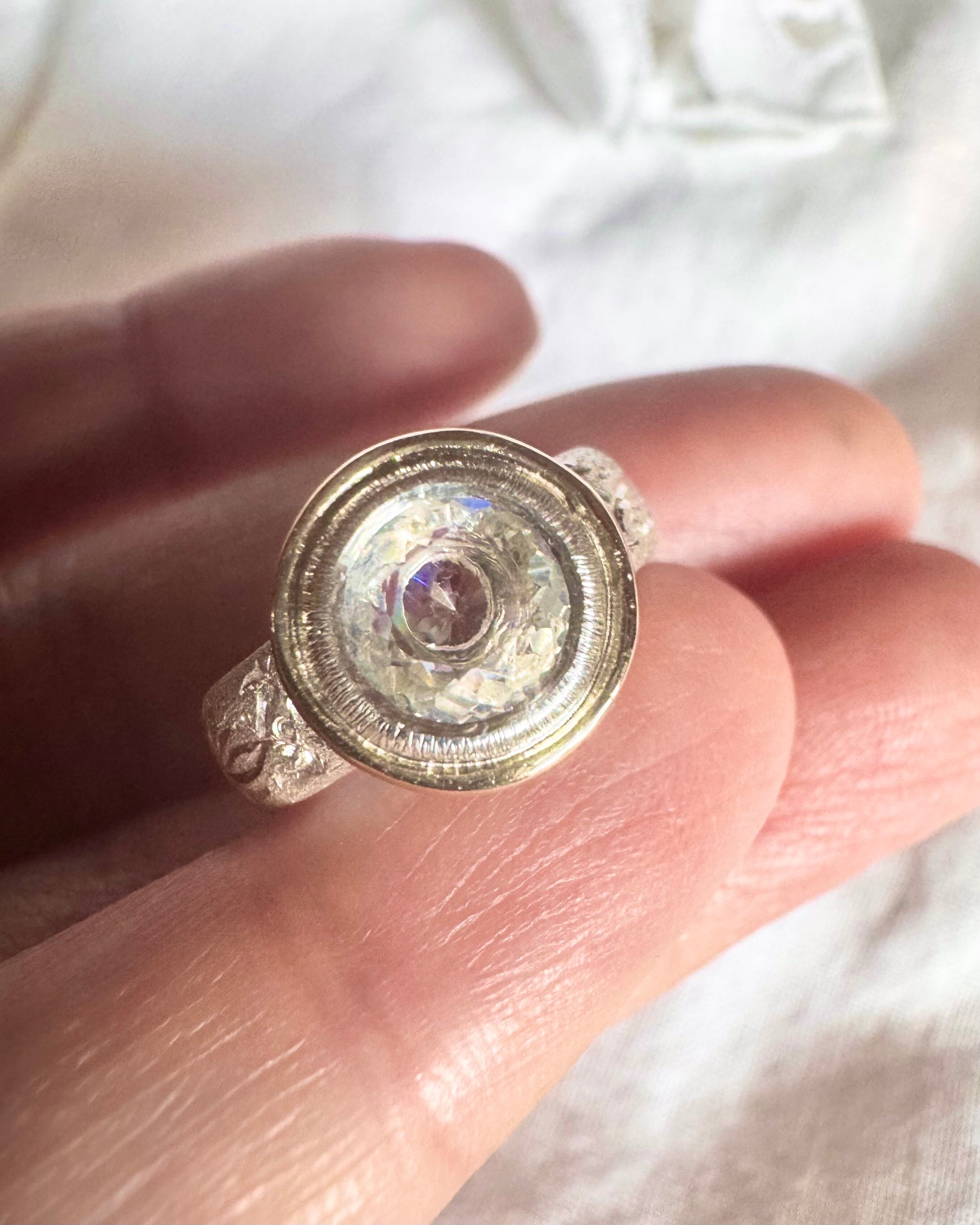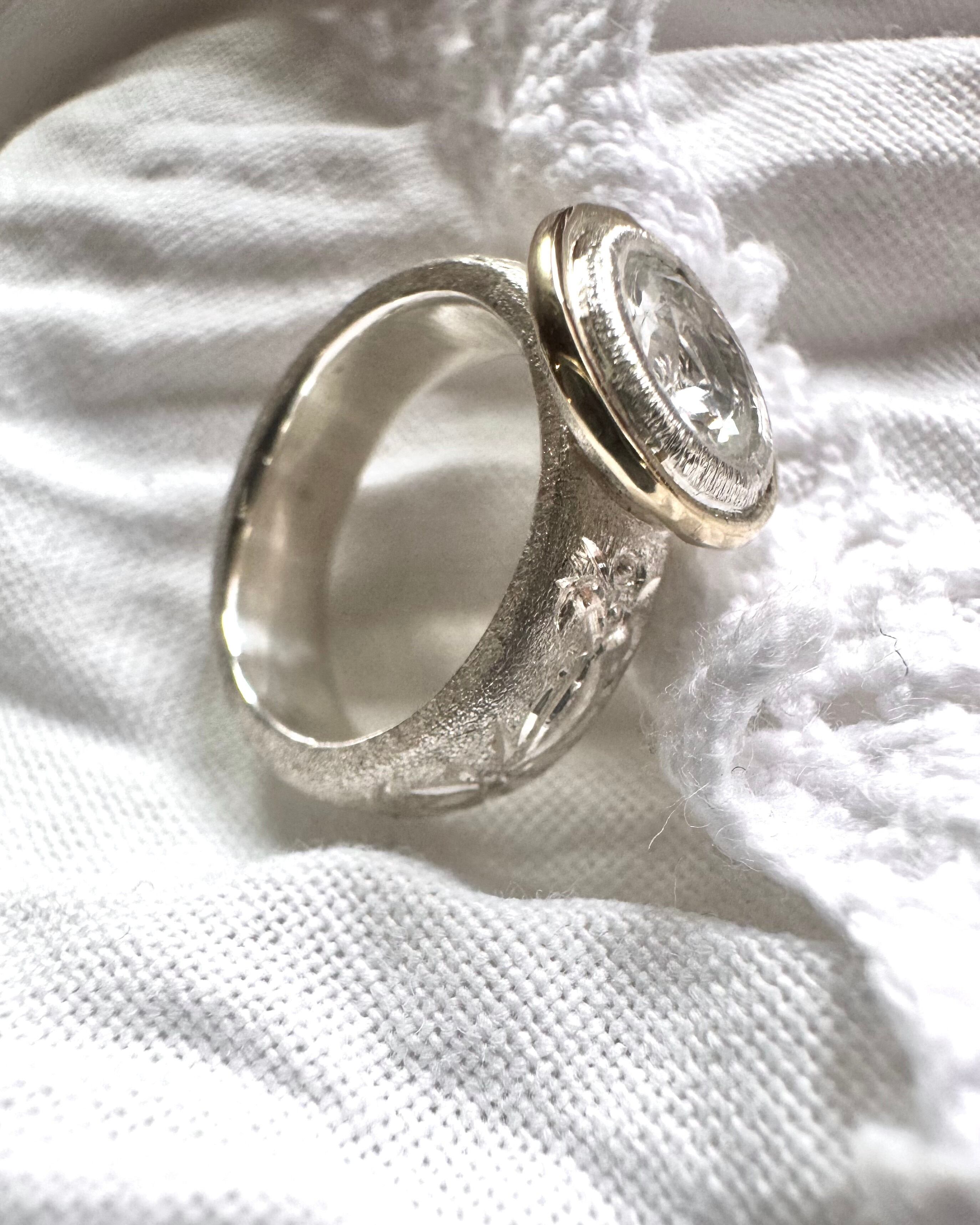 ふわりと純銀で包みk10ygで華やかな色味を出し…手彫りで幻想的にデザインし、特別なピンキーリングにしあげました。